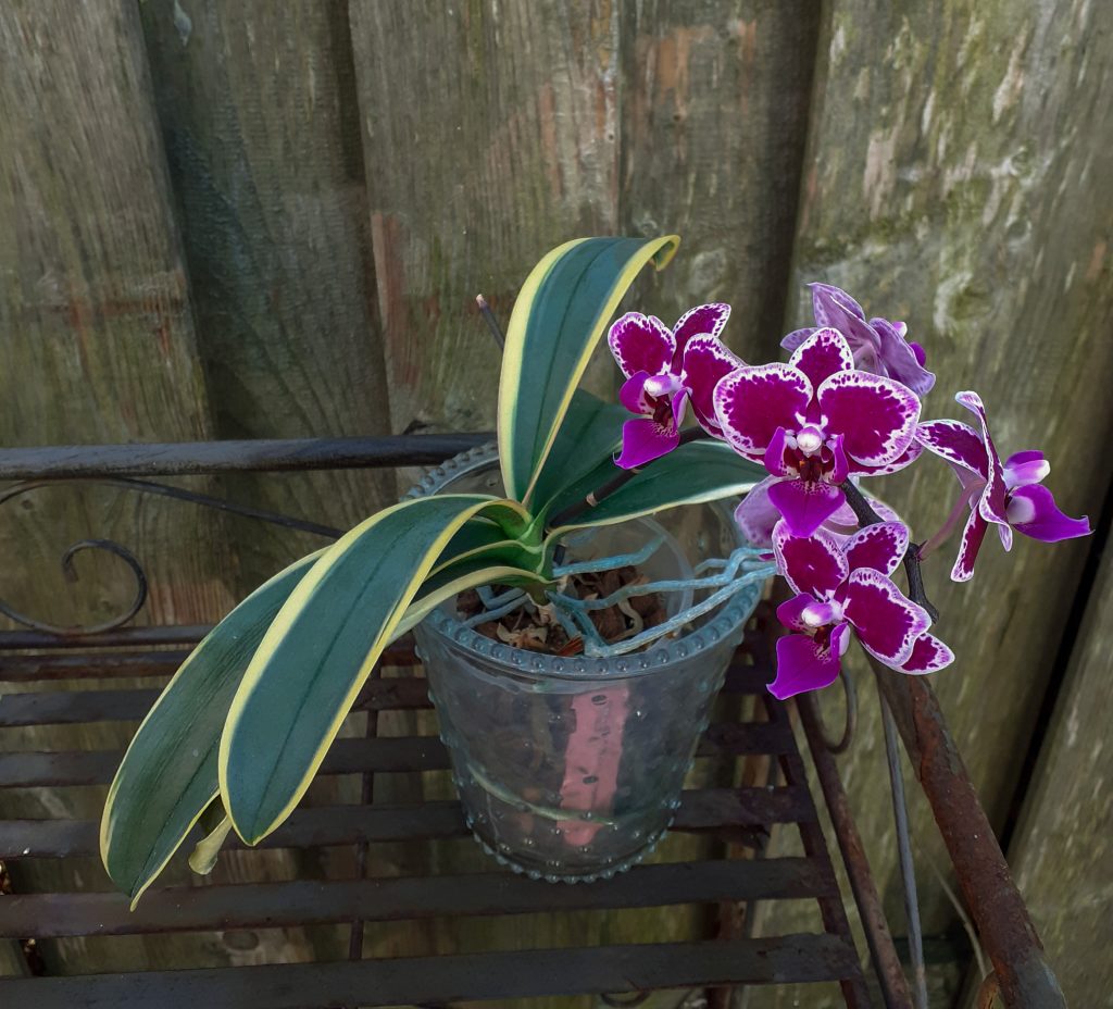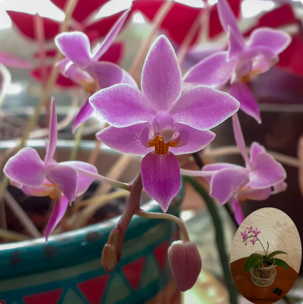 Phal. equestris eine kleine pflegeleichte Wildart, deren Blüten nach Kernseife riechen und die gerne Ableger (Kindel) bilden !