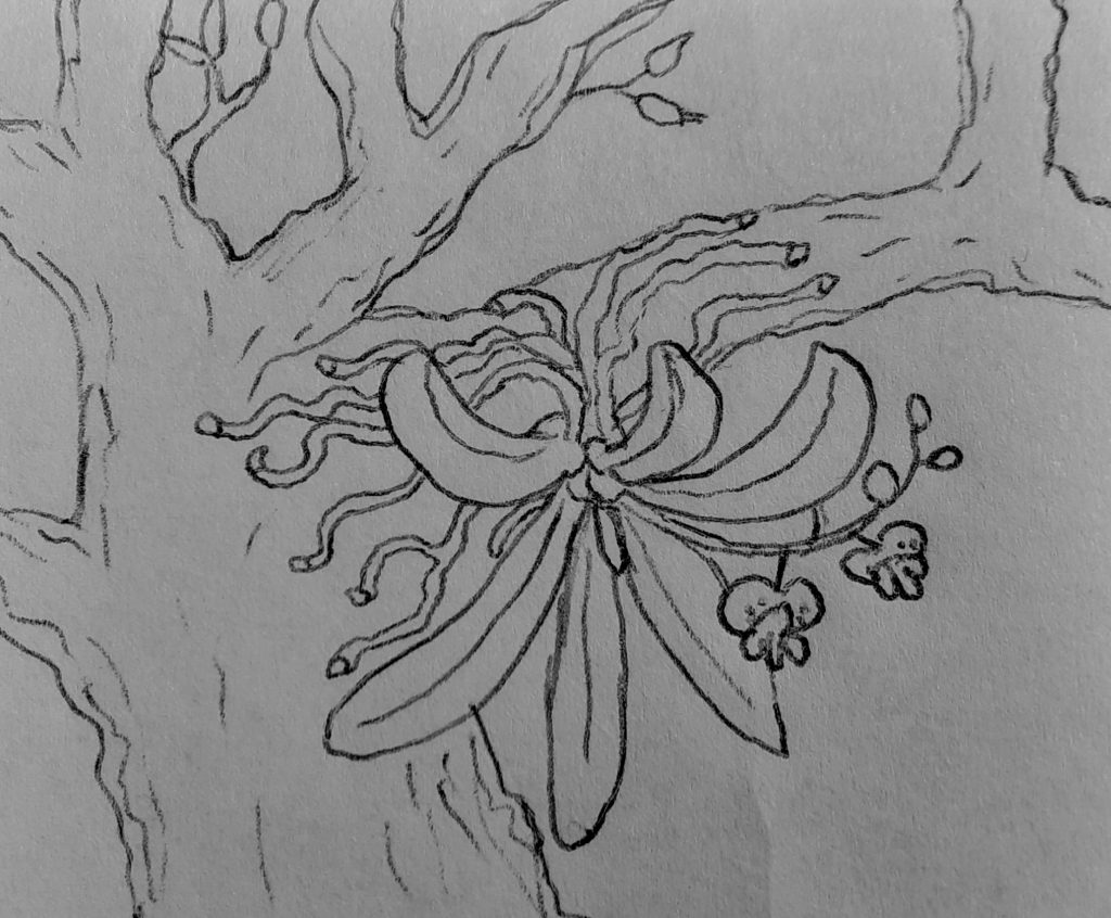 Bei uns zu Hause versuchen wir dies zu imitieren mit Rindenstücken in denen sie wurzeln kann. Im inneren des Topfes herrschen ähnliche Konditionen wie auf einem dauerfeuchten Regenwaldbaum. (Dauerfeucht bedeutet nicht Dauernass, aber dazu später mehr)